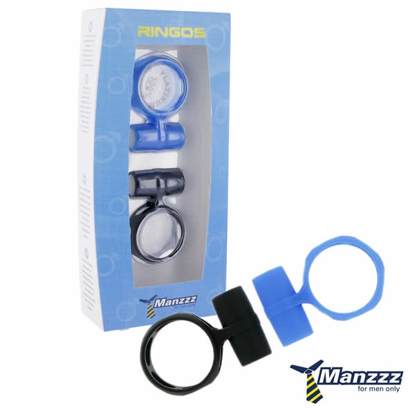 Dwa wibrujące pierścienie -ManzzzToys RingosZestaw o wielu możliwościachBardzo sympatyczny zestaw, którydoceni każdy fan pierścieni na członek.