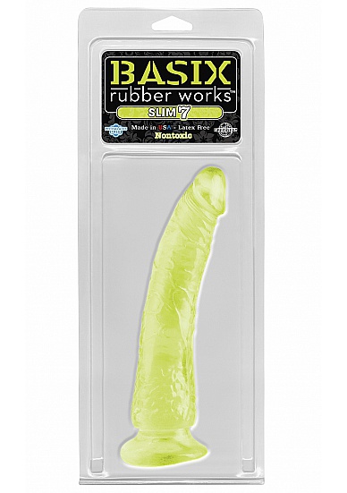 SexShop - Dildo szczupłe z przyssawką - PIPEDREAM Basix Rubber Works Slim 7" with Suction Cup - Zielony - online