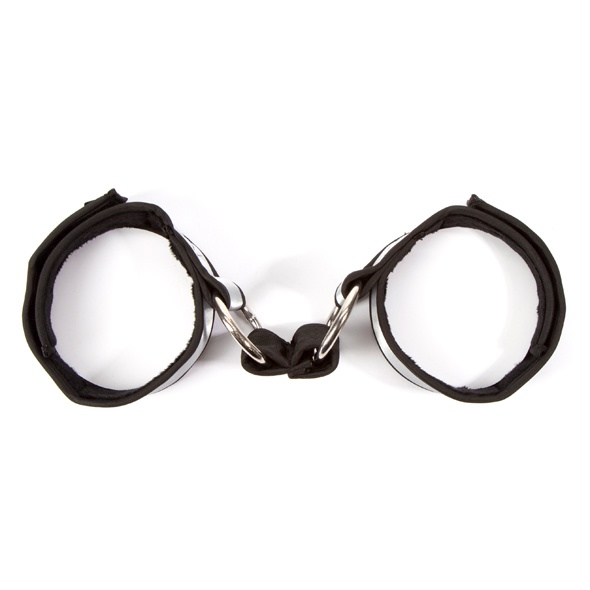 Kajdanki wykonane z miękkiego materiału,w środku mają wyściółkę ze sztucznego futra, a zapięcie na taśmy velcro jest gwarancję pewnego utrzymania.