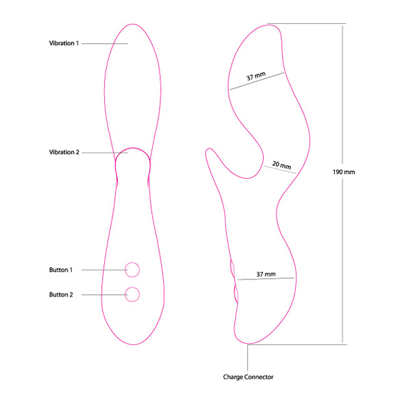 Wykonano go z najlepsze silikonu, wyposażono oczywiście w akumulatorek wewnętrzny zapewniający do 14 godzin pracy, mocny choć cichy napęd, nadano funkcję wodoodporności. Tym jednak co stanowi o jego największej wartości jest przemyślany kształt i niezwykła skuteczność. Bardzo wygodnie lezący w dłoni trzonek pozwala na pewny chwyt w każdej pozycji. Operujemy w ten sposób wibratorem lekko, płynnie i kontrolując w pełni przyjemność. Na uznanie zasługuje anatomicznie ukształtowana główka, idealnie dopasowana do kobiecego ciała. Stworzona z myślą o intensywnej stymulacji punktu G przylega do niego bardzo szeroką powierzchnia, dając kobiecie wrażenia płynące prosto z głębi i bardzo, bardzo mocne i soczyste. Dopełnieniem rozkoszy będzie końcówka stymulująca łechtaczkę, naciskająca na nią delikatnie, choć stanowczo.
