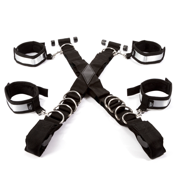 Można dzięki nim rozpiąć w pozycji X twarzą do osoby dominującej lub pośladkami. Pasy są regulowane, zapięcia również, więc nie będzie problemu z dopasowaniem do pozycji i wzrostu. Oczywiście w komplecie znajdują się cztery opaski na ręce i nogi, których możemy używać zarówno na kobiecie jak i na mężczyźnie. Miękkie, wygodne, zapinane na taśmy velcro, zapewniają komforty przy sesji i pewne krępowanie. Można je odpiąć i używać osobno.