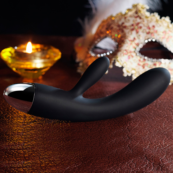 Wibrator wykonany z jedwabiście gładkiego silikonu o przyjemnej fakturze. Pod nim zaś kryją się dwa silniczki, które doskonale trafiają ze swoimi wibracjami w najczulsze miejsca kobiety – zgrabny stymulator pieści łechtaczkę a lekko wygięty trzon gładziutko wchodzi w kobietę by podniecać ją od środka. To wygięcie ułatwia płynność ruchów i sprawia też, że mocniej pobudzony jest punkt G, do którego przylega zaokrąglona główka.