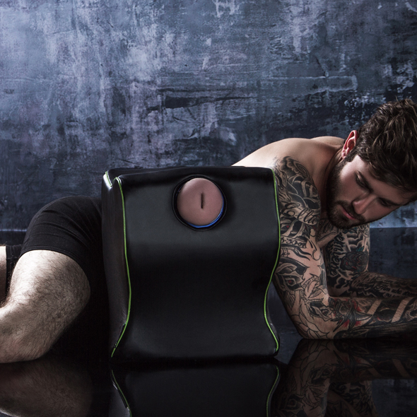Pokryty sztuczną skórą mebel posiada otwór mieszczący wasz ulubiony masturbator. Jest on wypoziomowany w taki sposób, że świetnie pozwala na jazdę od tyłu i nie wymaga do tego użycia rąk. Wkładamy Fleshlight w mebel i możemy do woli fantazjować o mocnym posuwaniu np. ulubionej aktorki na której intymnych miejscach wzorowany jest masturbator. Prędkość, siła i realizm tych ruchów są nie do podrobienia i dostarczają olbrzymiej satysfakcji i przyjemności.