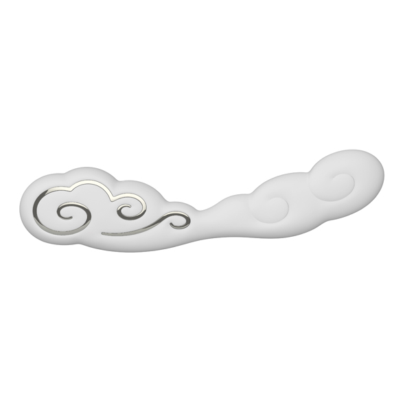 Wibrator do którego wykonania użyto doskonałej jakości materiałów. Najlepszej klasy silikon, cudownie miękki w dotyku, ale mimo swej delikatności jędrny i sprężysty. Uformowano go w charakterystyczny dla serii motyw chmur. Tak wyprofilowana rękojeść jest wygodna w używaniu, bardzo dobrze leży w dłoni. Natomiast druga strona, czyli trzon, jest świetnie dopasowana do kobiecych potrzeb.