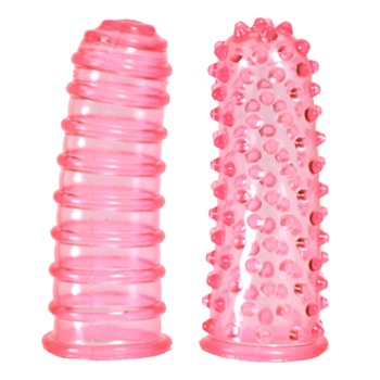Idealna propozycja dla osób,które chcą zwiększyć przyjemność z pieszczot, ale niechcą lub nie mogą sięgać po wibrator czy inne zabawki erotyczne.Delikatne, silikonowe nakładki na palce pozwolą wam czerpaćwiększą rozkosz z dotyku w intymnych miejscach. Każda z dwóchbędących w komplecie nakładek pokryta jest specyficznymi, miękkimiwypustkami lub żebrowaniami.