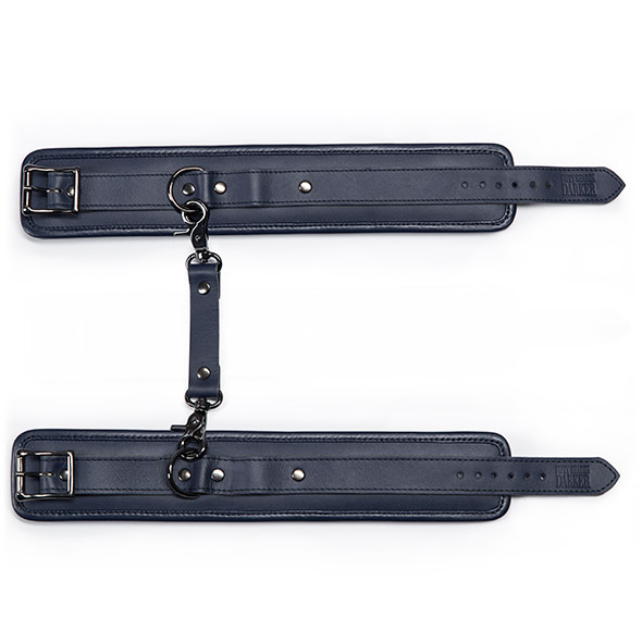 Kajdanki połączone są krótką taśmą podpiętą do pierścieni. Jeśli zrezygnujemy z tego łącznika uzyskujemy dwie opasujące kostki obręcze, świetnie nadające się do podpięcia do innych akcesoriów – na przykład drążka do rozpinania, albo ramy łóżka czy też połączenia z kajdankami na dłoniach.