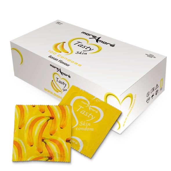 SexShop - Bananowe prezerwatywy MoreAmore Condom Tasty Skin Banan 50 sztuk - online