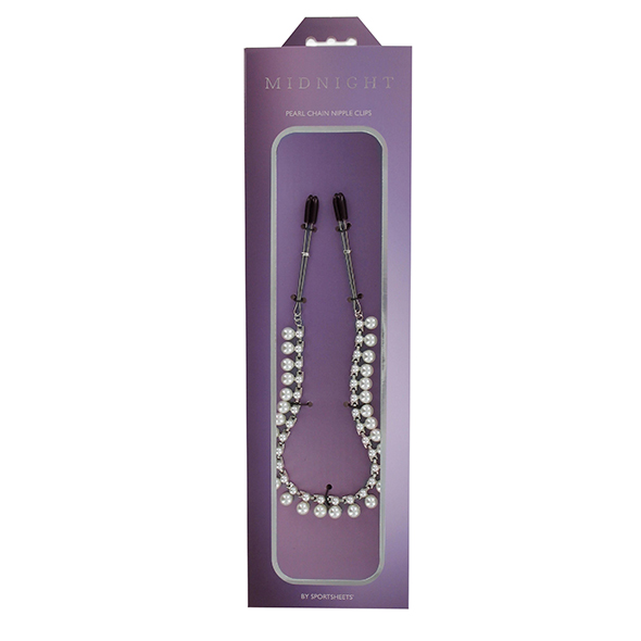 Zaciski na sutki z łańcuszkiem pereł - Sportsheets Midnight Pearl Chain Nipple Clips