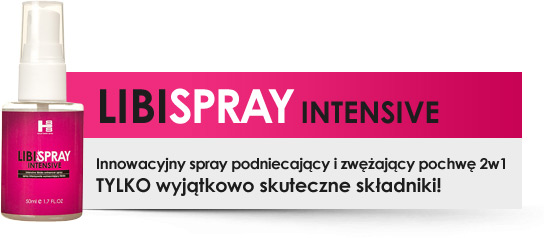 LibiSpray to innowacyjny preparat ekstremalnie zwiększający doznania dzięki unikalnej formule obkurczającej pochwę! Twój mężczyzna przypomni sobie Wasz pierwszy raz, a Ty będziesz gotowa do stosunku po bardzo krótkiej grze wstępnej. LibiSpray sprawi, że podczas stosunku Twój partner będzie lepiej Cię wypełniał, to pozwoli Wam na niezwykłą bliskość, a Tobie na orgazm stulecia!