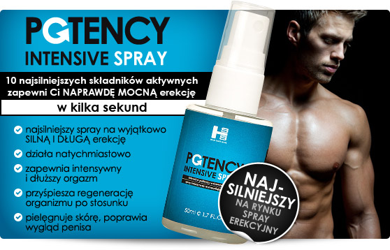 Intensywne składniki sprayu poprawiają ukrwienie członka, dzięki czemu nie tylko będziesztwardy i gotowy jak nigdy dotąd, ale także będziesz bardziej odczuwał wszelkie bodźce erotyczne. PotencySpray sprawi, ze przeżyjesz orgazm ze zdwojoną siłą!