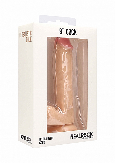 REALROCK DILDO 9" JĄDRA PRZYSSAWKA REAL - REALISTIC COCK - 9" - WITH SCROTUM - SKIN