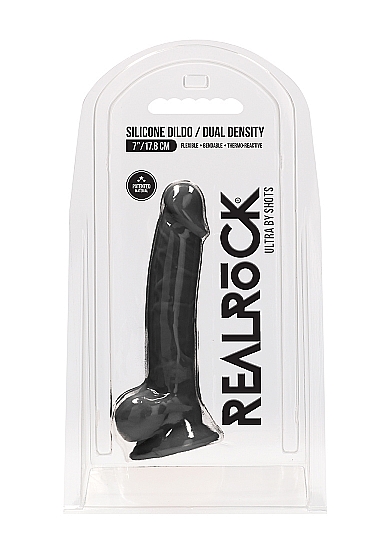 REALROCK DILDO 17,8CM PRZYSSAWKA JĄDRA - SILICONE DILDO WITH BALLS - BLACK - 17,8 CM