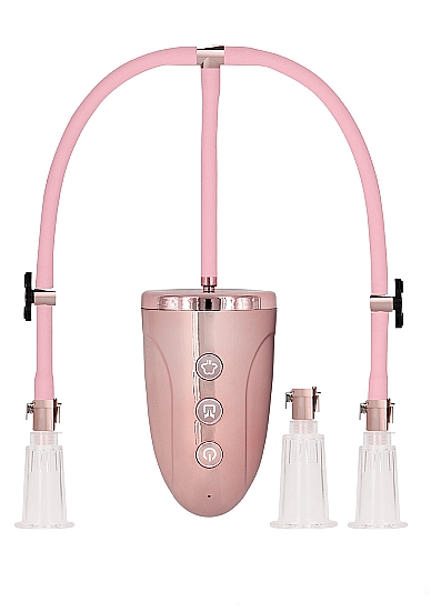 POMPKA DO SUTKÓW I ŁECHTACZKI ZESTAW ROZMIAR L - AUTOMATIC RECHARGEABLE CLITORAL & NIPPLE PUMP SET - L - PINK