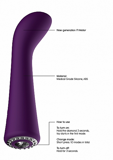 Wibrator stymulujący punkt G DISCRETION jest cichy niczym szept (poniżej 50 dB), oferując potężne orgazmy, gdy zajdzie taka potrzeba. Wyposażony w silnik nowej generacji F1, który oferuje 10 różnych trybów wibracji i rozkręca się do 8500 obr./min., dzięki czemu końcówka urządzenia zapewnia dodatkową stymulację łechtaczki i punktu G. Znajdujący się na spodzie diamentowy akcent dodaje urządzeniu elegancji. Wibrator idealnie pasuje do dyskretnego pudełka z gniazdem USB, a pojedyncze ładowanie gwarantuje 60 minut niczym nieskrępowanej przyjemności. Przewód w zestawie.