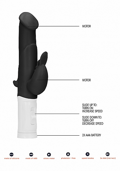 Na tę zabawkę czekałaś, jeśli potrzebujesz prawdziwej mocy i zniewalających obrotów! Posiadający 2 potężne silniki Rotating Bunny Vibrator rozkręca się do 15.000 obr./ min., emitując przy tym dyskretny dźwięk o natężeniu poniżej 50dB. Oferuje przy tym 3 różne tryby i prędkości wibracji. Wykonany z delikatnego silikonu wysokiej jakości i tworzywa ABS. Ten obrotny królik wyposażono w realistyczną żołądź i parę zniewalających uszu zapewniających godziny nieskrępowanej zabawy! Ten Rotating Bunny Vibratorwyposażono w dwa silniki mierzy 22,5 cm długości, a jego obwód to 3,6 cm. Głębokość penetracji wynosi 11 cm. Ta wodoodporna (IPX7) zabawka to idealny towarzysz kąpieli. Wystarczy zasilić go 3 bateriami AAA (brak w zestawie) i przygotować się na nieco czułości. Dostępny w kolorze czarnym, fioletowym i różowym