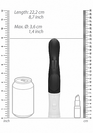 Dając Ci to, co najlepsze, ten Rotating Rabbit Vibrator stymulujący punkt G zawsze spełnia swoje zadanie! Dzięki niesamowitej technologii opartej o dwa potężne silniki, zabawka rozkręca się do szybkich 15.000 obr./min. przy czym nie jest głośniejsza niż 50dB. Oferuje też 3 różne tryby obrotów oraz wibracji. Ergonomicznie zaprojektowana główka obraca się, dając dodatkową stymulację punktu G, a królicze uszy zajmują się stymulacją łechtaczki. Wykonany z wysokiej jakości silikonu oraz tworzywa ABS figlarny króliczek mierzy 22,2 cm długości i ma 3,6 cm w obwodzie. Głębokość penetracji wynosi 11,5 cm