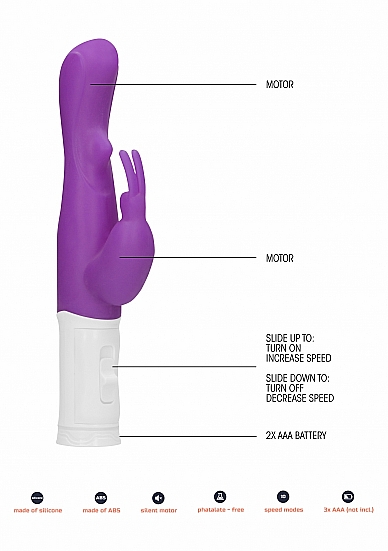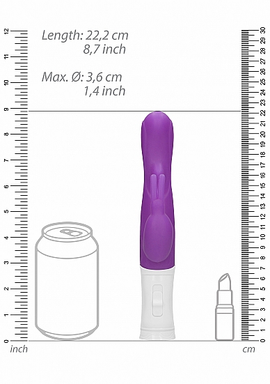 Dając Ci to, co najlepsze, ten Rotating Rabbit Vibrator stymulujący punkt G zawsze spełnia swoje zadanie! Dzięki niesamowitej technologii opartej o dwa potężne silniki, zabawka rozkręca się do szybkich 15.000 obr./min. przy czym nie jest głośniejsza niż 50dB. Oferuje też 3 różne tryby obrotów oraz wibracji. Ergonomicznie zaprojektowana główka obraca się, dając dodatkową stymulację punktu G, a królicze uszy zajmują się stymulacją łechtaczki. Wykonany z wysokiej jakości silikonu oraz tworzywa ABS figlarny króliczek mierzy 22,2 cm długości i ma 3,6 cm w obwodzie. Głębokość penetracji wynosi 11,5 cm