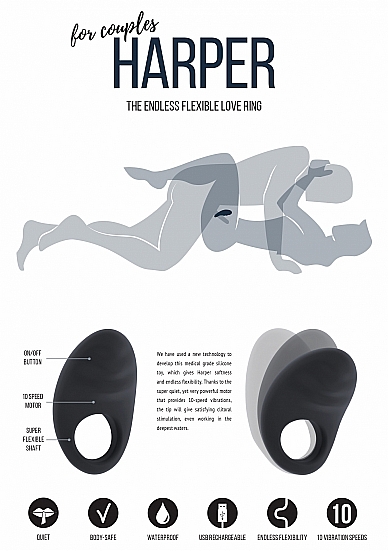 Jìl posiada zmysłowy wygląd inny od wszystkich. Harper to bardzo lekki pierścień na penisa, zaprojektowany z najwyższą precyzją, dzięki czemu może spełnić Twoje najgłębsze pragnienia. Zastosowaliśmy nową technologię do zaprojektowania zabawki z medycznie zatwierdzonego silikonu, który zapewnia miękkość i elastyczność, dzięki której Harper idealnie dopasuje się do kształtu Twojego ciała. Super cichy, a zarazem potężny silnik posiada 10 prędkości drgań i końcówkę, która zapewnia satysfakcjonującą stymulację łechtaczki, nawet pod wodą. Po skończonej zabawie wystarczy podłączyć wibrator do dołączonej ładowarki USB. Jedno dotknięcie wystarczy, aby zakochać się w cieple, które promieniuje od tej zabawki. Wpuść Jìl do swojego życia i pozwól się rozpieścić!