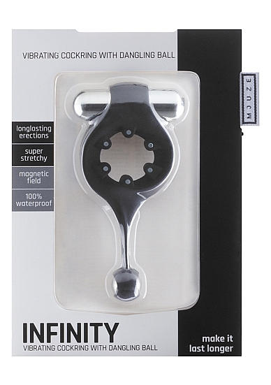 PIERŚCIEŃ EREKCYJNY Z KULECZKĄ INFINITY - INFINITY - VIBRATING COCKRING WITH DANGLING BALL - BLACK