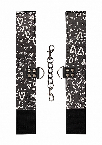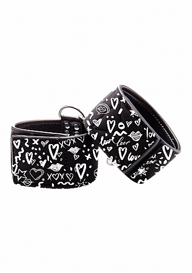 ELEGANCKIE KAJDANKI NA KOSTKI - PRINTED ANKLE CUFFS - LOVE STREET ART FASION - BLACK