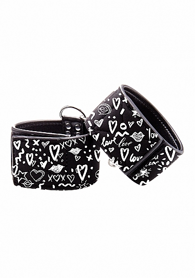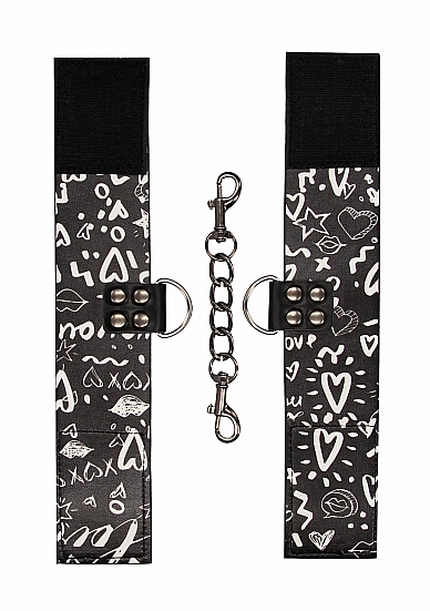 ELEGANCKIE KAJDANKI NA RĘCE - PRINTED HAND CUFFS - LOVE STREET ART FASION - BLACK