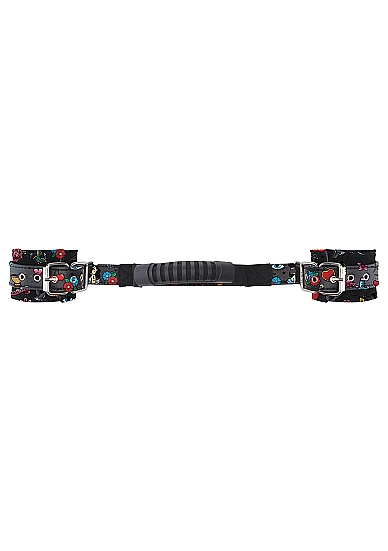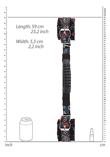ELEGANCKIE KAJDANKI NA RĘCE Z UCHWYTEM - PRINTED HANDCUFFS WITH HANDLE - OLD SCHOOL TATTOO STYLE - BLACK