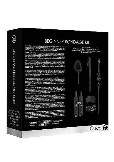 Dla par, które chcą odkrywać swoją niegrzeczną stronę: to zestaw dla was. W zestawie znajdują się wszystkie podstawowe przedmioty, które rozgrzeją Wa- sze miłosne życie. W zestawie znajduje się knebel pozwalający na oddychanie, skórzane kajdanki na ręce i kostki, pejcz, 28-centymetrowe piórko do łaskotania i satynowa maska na oczy.