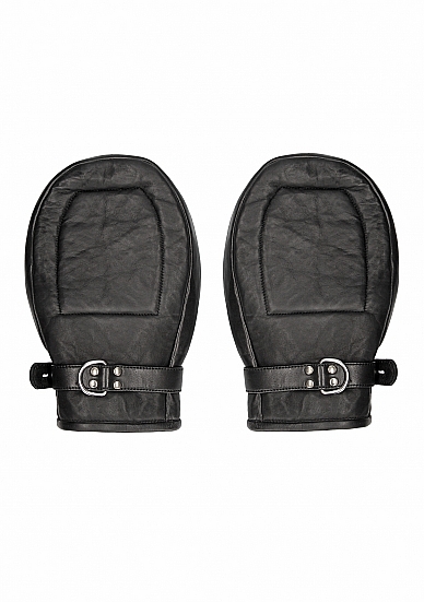 ĆWIEKOWANE RĘKAWICZKI ZE SKÓRY NATURALNEJ BDSM - BONDAGE MITTENS PADDED WITH METAL TEETH - BLACK