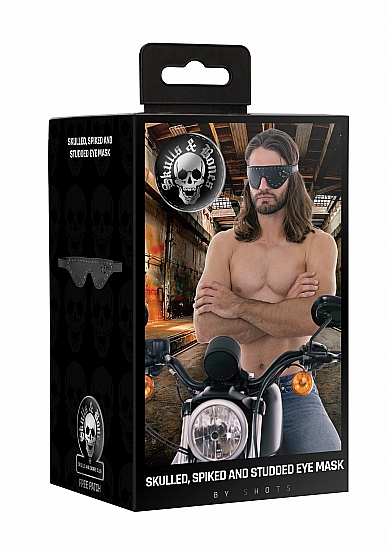 Wykonana z wysokiej jakości czarnej skóry ekologicznej, ta niezwykła maska na oczy tworzy odważną kombinację z metalowymi czaszkami, ćwiekami i kolcami. Oddaj się w ręce partnera dzięki tej wygodnej i niezwykle uwodzicielskiej, doskonale ukształtowanej masce na oczy.