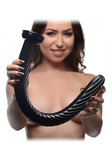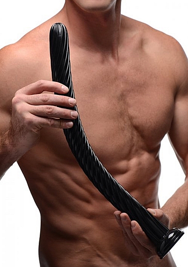 Fakturowany, czarny wąż od XR został zaprojektowany dla tych, którzy lubią stymulację, penetrację i wrażenia wizualne! 19-calowe elastyczne dildo wypełni rozkoszą każdy skrawek Twojego ciała! Mocny, ale elastyczny wąż został wyposażony w spiralnie biegnącą teksturę, aby zapewnić jeszcze więcej wrażeń, podczas aplikacji i penetracji. Sprawdź, ile z tej 19-calowej bestii możesz zmieścić w sobie? Mocna przyssawka u podstawy gadżetu przywiera do większości płaskich powierzchni, dzięki czemu masz pełną kontrolę, nawet podczas gry solo. Wejdź na zupełnie nowy poziom przyjemności z tym ekscytującym gadżetem! Produkt jest całkowicie wodoodporny, pomoże Ci więc zmienić zwykłą kąpiel w wielką, seksualną przygodę! Materiał nie zawiera ftalanów i jest kompatybilny zarówno z lubrykantami silikonowymi, jak i na bazie wody. Po użyciu dokładnie umyj go łagodnym mydłem i ciepłą wodą.