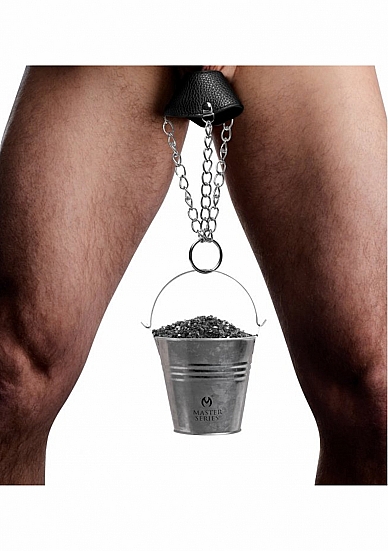 Zaskakuj swojego partnera przyjemnością płynącą z obciążania jąder. Dorzucaj do Diabelskiego Wiadra coraz więcej i więcej i obserwuj jak adrenalina wpływa na stopień podniecenia! Porusz swoje ciało i umysł, ciasno owijając mosznę w mocny, skórzany pas z zawieszonym na łańcuchach wiadrem. Entuzjaści sado maso pokochają spersonalizowane doznania - poczucie władzy dla partnera dominującego i nieprzewidywalną, niebezpieczną przyjemność dla uległego. Bądź kreatywny, wypełniając wiadro Master Series wszystkim, czego zapragnie Twój zachłanny umysł i przekonaj się ile waży rozkosz! Wypełnij wiadro po brzegi dzięki jego wytrzymałej konstrukcji lub zdejmij je i przymocuj do pasa smycz lub inny atrybut władzy!