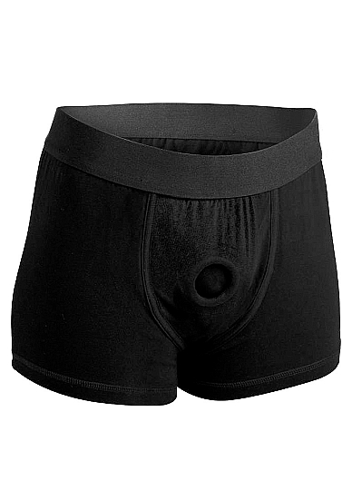 Poczuj się wygodniej i bardziej stylowo niż kiedykolwiek wcześniej przypinając swoje ulubione dildo do komfortowej uprzęży od Strap U! Uprząż w stylu bokserek przypomina bieliznę, lecz tak naprawdę to efektowny, erotyczny gadżet z wbudowanym, rozciągliwym pierścieniem, do którego przymocujesz swoje ulubione dildo!Możesz nosić te bawełniane szorty pod ubraniem ponieważ uprząż jest wyjątkowo komfortowa podczas długotrwałego noszenia. Wspierający elastyczny pas udźwignie ciężar Twojego dildo, dzięki czemu uzyskasz większą mobilność w każdej pozycji. Uprząż jest kompatybilna z dildami o płaskiej podstawie o szerokości 1,75 cala lub szerszej. Można prać w pralce.