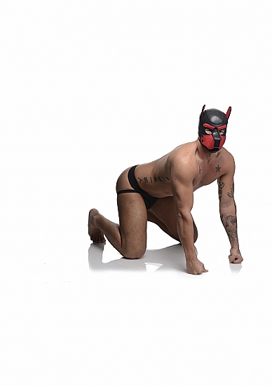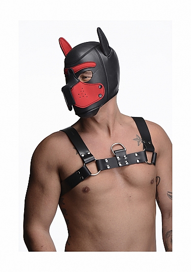 NEOPRENOWA MASKA PIES - CZARNO-CZERWONA AG292-RED - NEOPRENE PUPPY HOOD - BLACK AND RED
