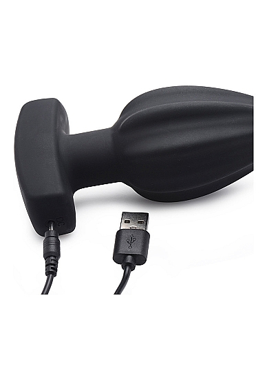 WIBRACYJNY KOREK ANALNY Z PILOTEM PRĄŻKOWANY - ASSTERISK - CZARNY AG390 - RIBBED VIBRATING ANAL PLUG WITH REMOTE CONTROL - BLACK