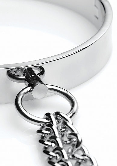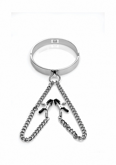 Zmuś swojego niewolnika do uległości za pomocą tego eleganckiego, luksusowego, chromowanego kołnierza od Mistress. Model IS115 będący ulepszeniem pierwotnego kołnierza, zawiera zestaw zacisków połączonych z obrożą chromowanymi łańcuchami. Niepozorne zaciski pozwalają na zadanie wyjątkowo podniecającego bólu, poprzez stymulację delikatnych sutków. Przypomnij partnerowi kto ma władzę i kontrolę! Zaciski są w pełni regulowane za pomocą mechanizmu śrubowego, dzięki czemu możesz przejść od wywierania subtelnego nacisku aż do błagania o litość! Dołączony klucz sześciokątny blokuje kołnierz tak ciasno, że Twój niewolnik nie poczuje nic poza zimną stalą wokół gardła, dopóki z nim nie skończysz.