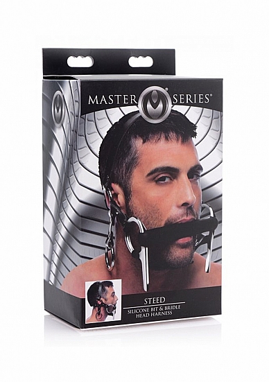 Zafunduj swojemu ogierowi luksusową uzdę z kneblem, wykonaną z wysokiej jakości skóry i silikonu premium. Wytrzymała uprząż na głowę od Master Series sprawi, że Twój kochanek będzie uwięziony, pozbawiony głosu, bezradny i wystawiony na Twoją łaskę gdy każesz mu spełniać każdą swoją zachciankę... Metalowe akcenty dodają klasy, a mocne uchwyty zapewniają możliwość mocowania innych akcesoriów BDSM w różnych punktach. Dopasuj paski na głowie i szyi, aby całkowicie zniewolić swojego partnera. Wytrzymały knebel uciszy nawet najbardziej knąbrnego samca... A teraz chwyć bat i przypomnij mu, kto tu rządzi!
