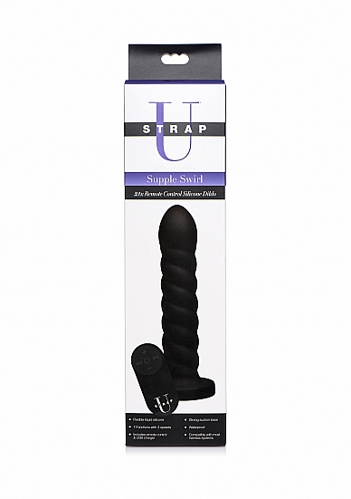 Strap-U przestawia niepowtarzalne, spiralne dildo Supple Swirl 21X, stworzone z myślą o największej satysfakcji! Pasujący do standardowych uprzęży luksusowy wibrator został wykonany z płynnego silikonu, dla uzyskania aksamitnie gładkiego wykończenia i ponadprzeciętnej elastyczności. Zakochaj się w 3 prędkościach i 7 trybach silnych wibracji, które możesz kontrolować za pomocą bezprzewodowego pilota! Wibrator został zaprojektowany tak, aby zapewnić Ci wygodę i zaskakujące doznania. Spiralna faktura na trzonku potęguje efekt masażu. Poszerzana podstawa jest kompatybilna z większością uprzęży. Możesz też zassać ją na twardej powierzchni i ujeżdżać bez użycia rąk. Bezprzewodowe dildo Supple Swirl 21X jest wodoodporne, abyś nie musiała rozstawać się z nim podczas gorącej kąpieli w wannie lub pod prysznicem. Produkt został wykonany z aksamitnie gładkiego silikonu bez ftalanów. Nie jest kompatybilny z lubrykantami silikonowymi. Po użyciu wyczyść łagodnym mydłem i ciepłą wodą lub środkiem do dezynfekcji zabawek erotycznych.
