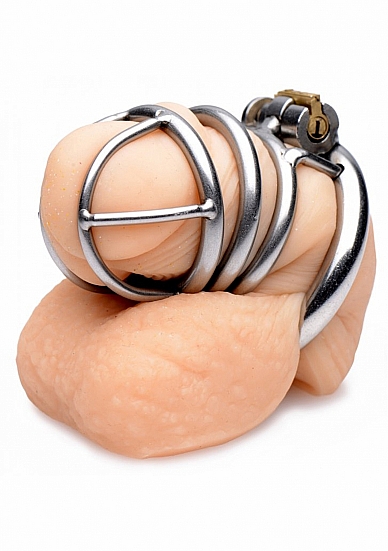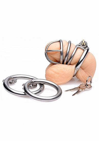 Niezależnie od tego, czy elegancka klatka czystości ze stali nierdzewnej od Master Series jest tylko częścią gry wstępnej, czy też ma służyć jako zapewnienie wierności, zapewni ci kontrolę nad partnerem. Do zestawu są dołączone trzy różne rozmiary pierścieni, aby zapewnić wygodne dopasowanie lub torturować za karę... Dobierz właściwy w zależności od tego, na co zasługuje Twój niewolnik. Najbardziej unikalną cechą tego urządzenia jest wewnętrzny system blokowania. Włóż klucz do mosiężnej dziurki i przekręć, aby odblokować zamek. Następnie możesz włożyć go do zawiasu. Po kolejnym przekręceniu klucza Twój niewolnik zostaje bezsilny i uwięziony, dopóki nie zdecydujesz się go uwolnić... JEŚLI zdecydujesz się go uwolnić!