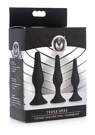 ZESTAW TRZECH STOŻKOWYCH, SILIKONOWYCH KORKÓW DO TRENINGU ANALNEGO - CZARNY AG376 - TRIPLE SPIRE TAPERED SILICONE ANAL TRAINER SET OF 3 - BLACK