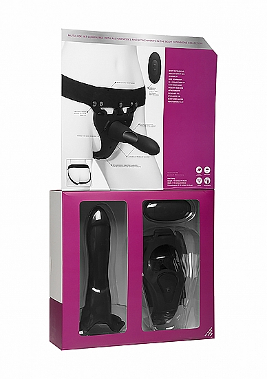 Ten wysokiej jakości 2-częściowy zestaw zawiera regulowaną uprząż elastyczną i silikonową, z którą masz pewność na stabilne przymocowanie penisa zarówno do ciała kobiety, jak i mężczyzny. Z wbudowanym 10-funkcyjnym wibratorem oraz jedną wysokiej jakości silikonową przyssawkę, zaprojektowaną w celu maksymalnego podniecenia jak i przyjemności seksualnej, a zarazem udoskonalenia pozycji seksualnych. Za pomocą bezprzewodowego pilota lub przycisków powierzchniowych masz pełną kontrolę nad ciałem partnera. Uprzęże wibracyjne Body Extensions są w pełni ładowalne za pomocą dołączonego kabla USB. Każdy produkt z kolekcji Body Extensions zawiera szczegółową instrukcję pielęgnacji i użytkowania.