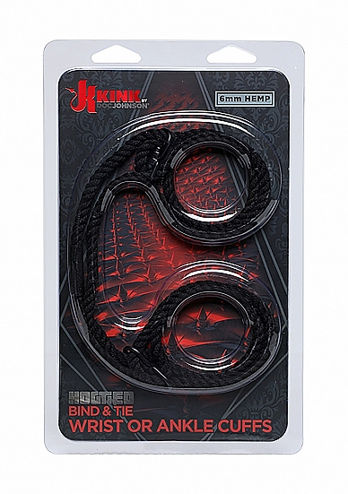 LINA DO WIĄZANIA/ CZARNA 2404-61-CD - HOGTIED - BIND & TIE - 6MM HEMP WRIST OR ANKLE CUFFS - BLACK