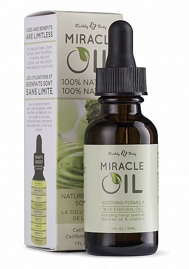 Jeden produkt do stosowania na twarz, skórę, włosy i do masażu! Miracle Oil od Earthly Body to mieszanka w 100% naturalnych, eterycznych olejków, w tym olejku z drzewa herbacianego, oleju z nasion konopii i witaminy E o nieograniczonych zastosowaniach i korzyściach! Olejek głęboko nawilży i odżywi Twoją skórę i włosy, pozostawiając je aksamitnie gładkie i sprężyste. Przyjmij od natury to co najlepsze.