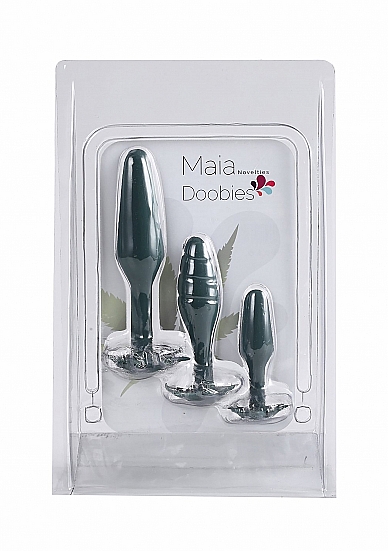 DOOBIES - ZESTAW TRZECH TRENINGOWYCH KORKÓW ANALNYCH W KSZTAŁCIE LIŚCI MARIHUANY - ZIELONY MA2004-LF