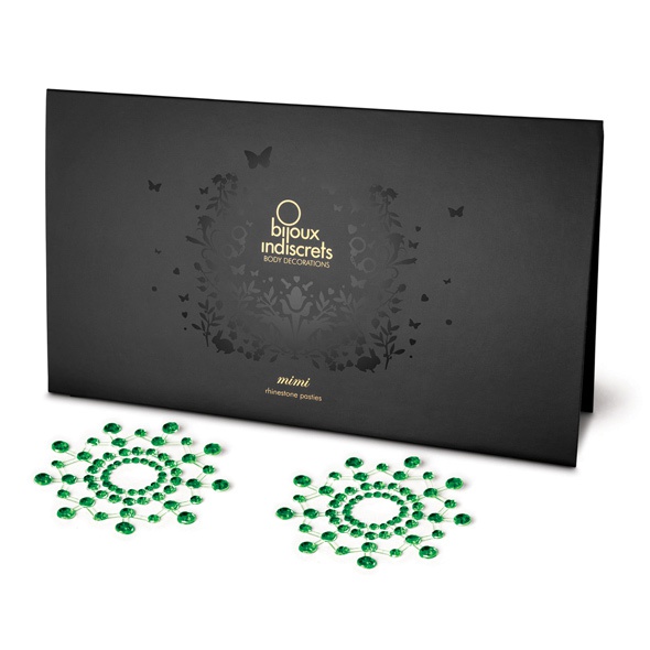 Diamentowe ozdoby na sutki i ciało- Bijoux Indiscrets MimiSeksowny akcent na gładkiej skórzewzór okręgi kolor szmaragdowy