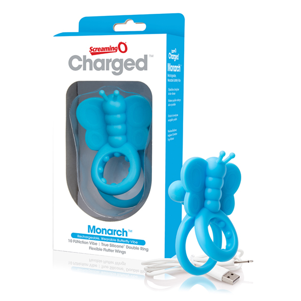 Sexshop - The Screaming O- Charged Monarch Wearable Butterfly Vibe  Niebieski - Pierścień wibrujący motylek na penisa - online