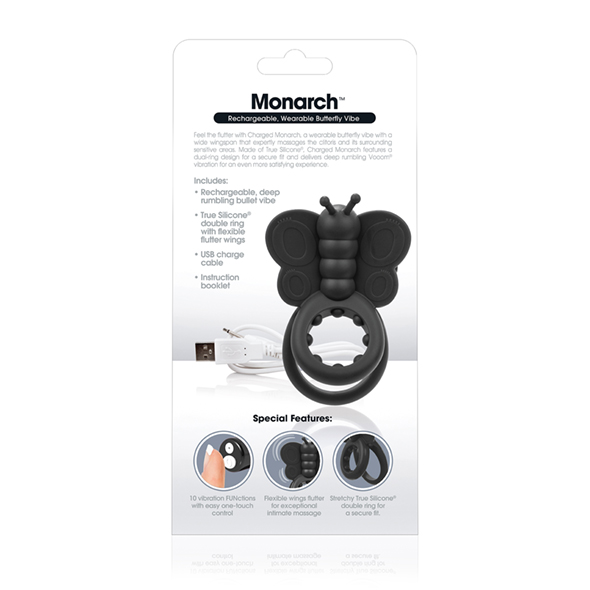 Bardzo oryginalny pierścień na penisa, który swoją nazwę zawdzięcza dużemu motylowi popularnemu w obu Amerykach. I kształt ma oczywiście do nazwy adekwatny, bowiem na podobieństwo motyla uformowany. Po założeniu na członek pierścień skutecznie i szybko spowalnia odpływ krwi i wzmacnia siłę oraz czas trwania erekcji. Pełni również wyrazistą funkcję stymulującą. Brzuszek motyla oraz jego główka w czasie penetracji ocierają się o łechtaczkę, a mięciutki, wibrujący silikon doskonale nadaje się do pobudzania tego delikatnego miejsca. Szerokie skrzydła motyla sprawiają, że pobudzony jest nie tylko klitoris ale i wargi sromowe oraz w sposób oczywisty zwiększa zasięg pierścienia i pozwala go kobiecie odczuwać przyjemność z jego używania w szerszej gamie pozycji.