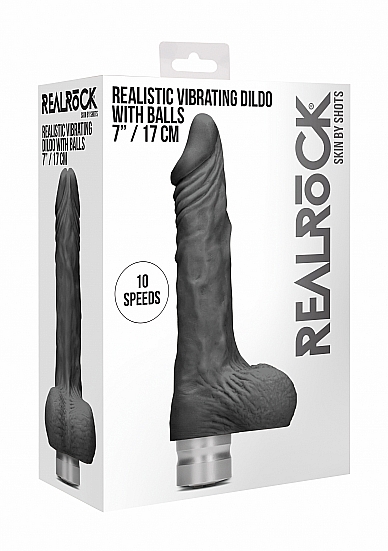 WIBRATOR REALISTYCZNY Z JĄDRAMI TPE REALROCK 17CM - REALROCK 7-17 CM VIBRATING DILDO WITH BALLS - BLACK