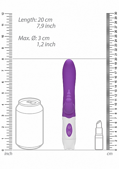 Poczuj rozkoszne brzęczenie dzięki temu przepięknie wykonanemu Buzzy Bee Vibrator z dwoma silnikami i możliwością stymulacji łechtaczki! Dwa potężne silniki rozkręcają się do niesamowitych 15.000 obr./min., by dać Ci zniewalającą stymulację, zachowując przy tym niskie natężenie dźwięku poniżej 50dB. Wykonany z delikatnego silikonu wysokiej jakości i tworzywa ABS. To brzęczące cudo wyposażono w ergonomiczny stymulator łechtaczki w kształcie bączka. Różne tryby wibracji i prędkość obrotów z pewnością pomogą Ci osiągnąć jeden orgazm za drugim! Mierząca 20 cm długości i 3 cm obwodu zabawka na baterie zapewnia sporą głębokość penetracji wynoszącą 9,5 cm. Ta wodoodporna (IPX7) zabawka to idealny towarzysz kąpieli. Wystarczy zasilić go 2 bateriami AAA (brak w zestawie) i przygotować się na nieco czułości. Dostępny w kolorze czarnym, fioletowym i różowym.