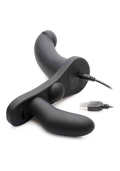 Od teraz ogranicza Cię już tylko Twoja wyobraźnia! Dwustronne dildo na uprzęży od firmy XR zostało zaprojektowane tak abyście oboje - w tym samym czasie - odczuwali przyjemność ze zdalnie sterowanych wibracji! Poznaj 3 prędkości i 7 trybów pulsacyjnych generowanych przez dwa osobne silniki - po jednym dla każdego z Was. Przełóż dłuższe dildo przez otwór w minimalistycznej uprzęży, natomiast krótsze, zakrzywione dildo umieść w pochwie i doświadcz intensywnej stymulacji Punktu G. Nieduża, okrągła wypukłość umiejscowiona tuż przed mniejszym dildo ma za zadanie ocierać się o Twoją łechtaczkę dodatkowo ją stymulując. Dłuższe dildo - przeznaczone dla Twojego partnera jest lekko wygięte dla jak najintensywniejszego podrażniania zakończeń nerwowych w Punkcie G lub Punkcie P. Pilot zdalnego sterowania ułatwia przechodzenie między 10 ustawieniami bez konieczności przerywania penetracji.Uwodzicielska uprząż posiada 2 punkty regulacji zapewniające idealne dopasowanie. Dwustronne dildo jest wykonane z najwyższej jakości silikonu bez ftalanów, dzięki czemu jest idealnie gładkie i całkowicie bezpieczne dla Twojego ciała. Produkt nie jest kompatybilny z lubrykantami silikonowymi. Ten bezprzewodowy, erotyczny gadżet z możliwością ładowania jest również całkowicie wodoodporny. Po użyciu dokładnie wyczyść przy pomocy łagodnego mydła i ciepłej wody lub środka do czyszczenia zabawek erotycznych.