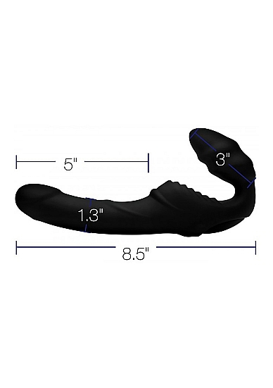 Serce zabije Ci szybciej na widok dwustronnego, zdalnie sterowanego dildo z funkcją wibracji od Strap-U! Po naciśnięciu jednego, małego przycisku na pilocie wibracje natychmiast trafiają do smukłego trzonu i mniejszej, teksturowanej końcówki tego podniecającego masażera. Ekscytujący, bezprzewodowy gadżet jest wyposażony w dwa niezależne silniki, które zapewniają 3 prędkości i 6 wariantów silnych wewnętrznych wibracji dla obojga partnerów. Pojedynczy przycisk sterujący na Pro Rider jest łatwy w użyciu i dostępny podczas penetracji, ale pilot zdalnego sterowania sprawia, że jest jeszcze wygodniejszy i bardziej seksowny!
